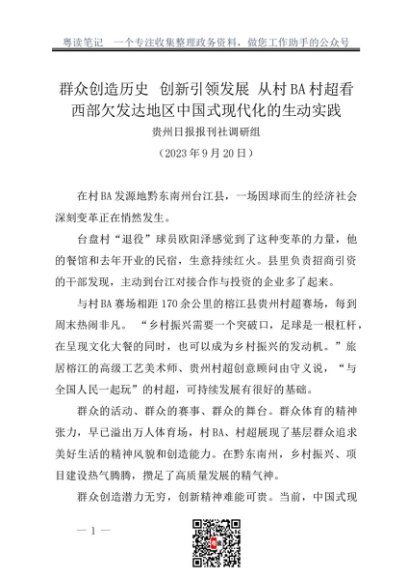 / 调研报告:20230920从村BA村超看西部欠发达地区中国式现代化的生动实践——贵州日报报刊社调研组