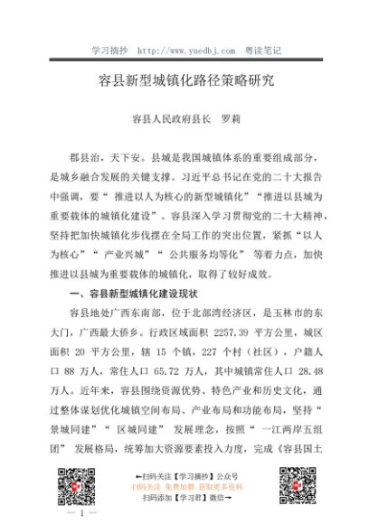 / 调研报告:20231220(新型城镇化建设)容县新型城镇化路径策略研究——容县县长 罗莉