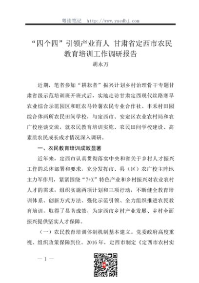 / 调研报告:20231000甘肃省定西市农民教育培训工作调研报告