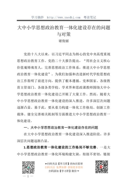 / 调研报告:20231130大中小学思想政治教育一体化建设存在的问题与对策