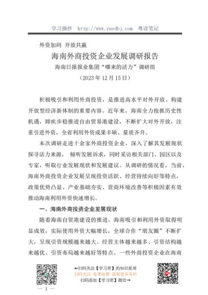 / 调研报告:20231215海南外商投资企业发展调研报告