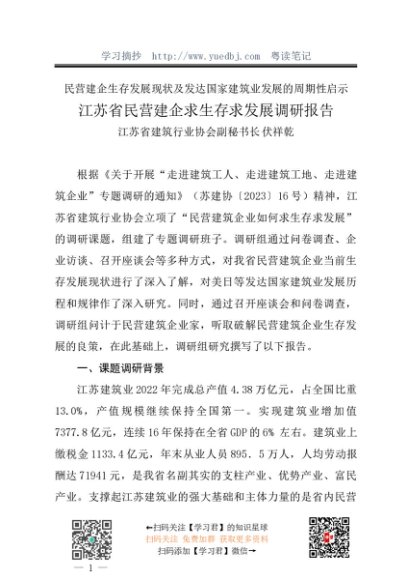 / 调研报告:20231130江苏省民营建企求生存求发展调研报告