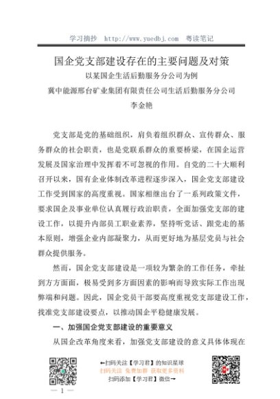 / 调研报告:20231230国企党支部建设存在的主要问题及对策