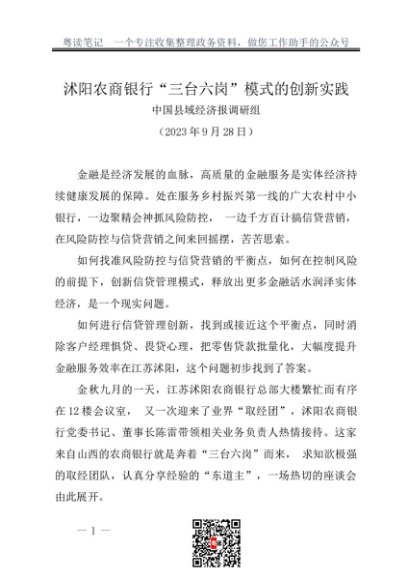 调研报告:20230928沭阳农商银行“三台六岗”模式的创新实践——中国县域经济报调研组