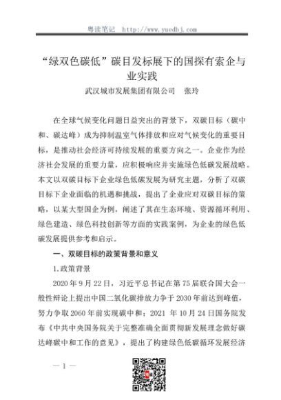 / 调研报告:20231000“绿双色碳低”碳目发标展下的国探有索企与业实践——武汉城市发展集团