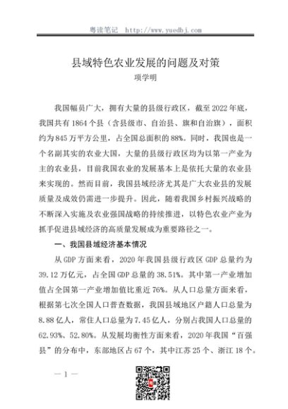 / 调研报告:20231000县域特色农业发展的问题及对策