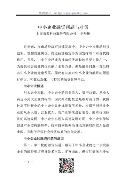 / 调研报告:20231000中小企业融资问题与对策