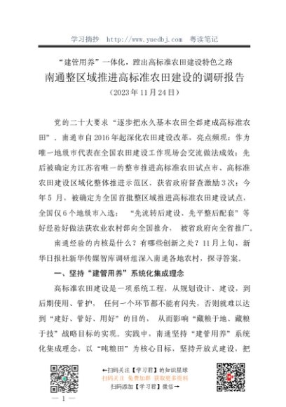 / 调研报告:20231124南通整区域推进高标准农田建设的调研报告