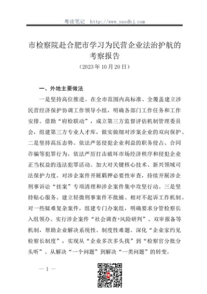 / 调研报告:20231020.市检察院赴合肥市学习为民营企业法治护航的考察报告docx