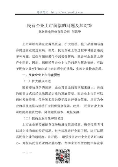 / 调研报告:20231000民营企业上市面临的问题及其对策