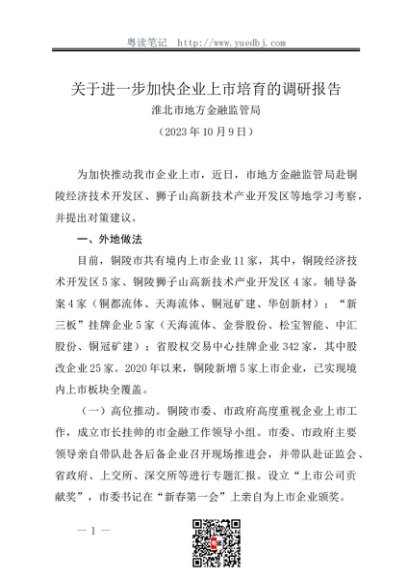 / 调研报告:20231009关于进一步加快企业上市培育的调研报告——淮北市地方金融监管局