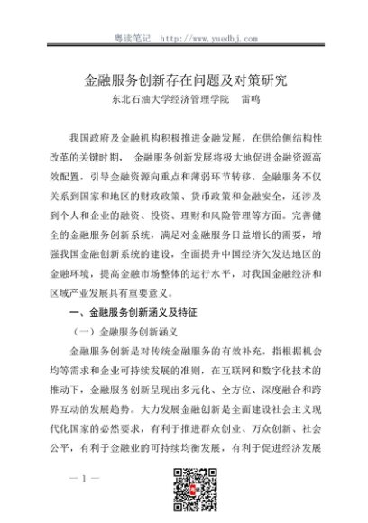 / 调研报告:20231000金融服务创新存在问题及对策研究——东北石油大学经济管理学院