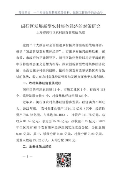 / 调研报告:20230900闵行区发展新型农村集体经济的对策研究——上海市闵行区农村经营管理站