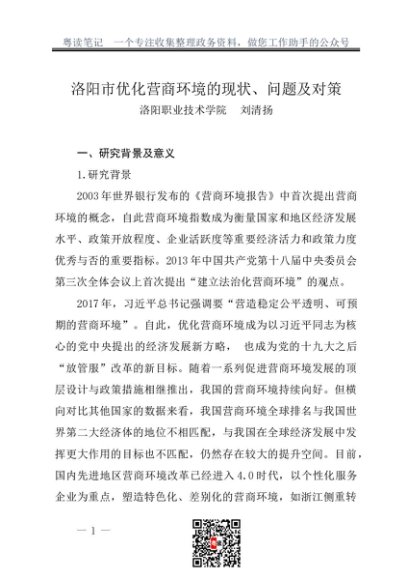 / 调研报告:20230900洛阳市优化营商环境的现状、问题及对策——洛阳职业技术学院