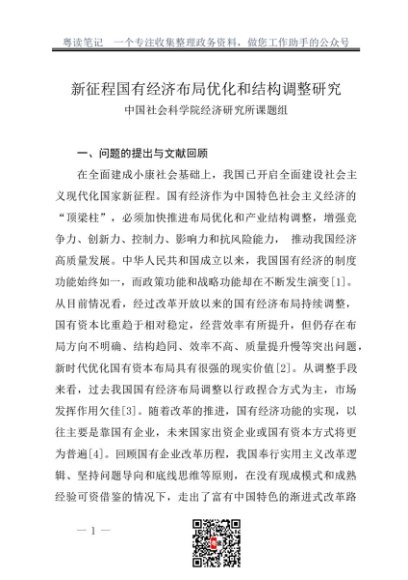 / 调研报告:20230900新征程国有经济布局优化和结构调整研究——中国社会科学院经济研究所课题组