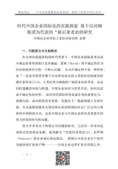 / 调研报告:20230900时代中国企业国际化的实践探索——基于以河钢集团为代表的“新后来者冶的研究