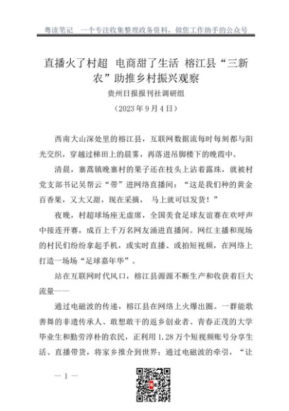 / 调研报告:20230904榕江县“三新农”助推乡村振兴观察——贵州日报报刊社调研组