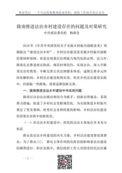 / 调研报告:20230900陇南推进法治乡村建设存在的问题及对策研究——成县委党校