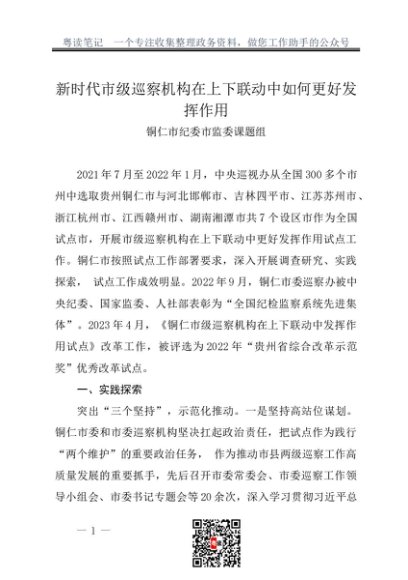 / 调研报告:20230900新时代市级巡察机构在上下联动中如何更好发挥作用——铜仁市纪委市监委课题组