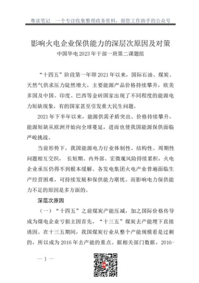 / 调研报告:20230900影响火电企业保供能力的深层次原因及对策——中国华电2023年干部一班第二课题组