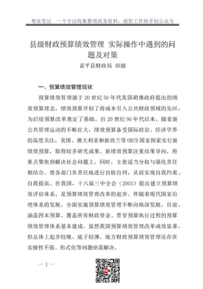 / 调研报告:20230900县级财政预算绩效管理实际操作中遇到的问题及对策——富平县财政局