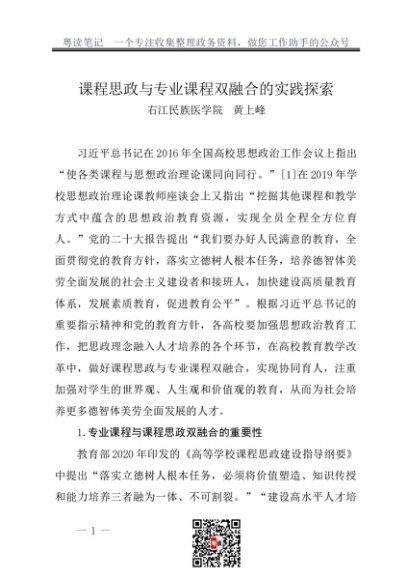 / 调研报告:20230900课程思政与专业课程双融合的实践探索——右江民族医学院黄上峰