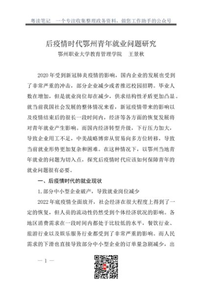 / 调研报告:20230915后疫情时代鄂州青年就业问题研究——鄂州职业大学教育管理学院