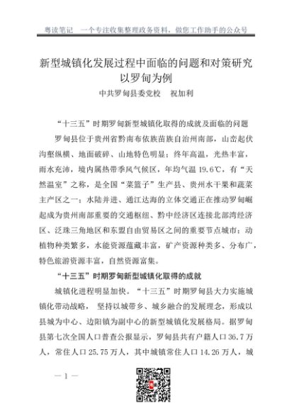 / 调研报告:20230900新型城镇化发展过程中面临的问题和对策研究——罗甸县委党校