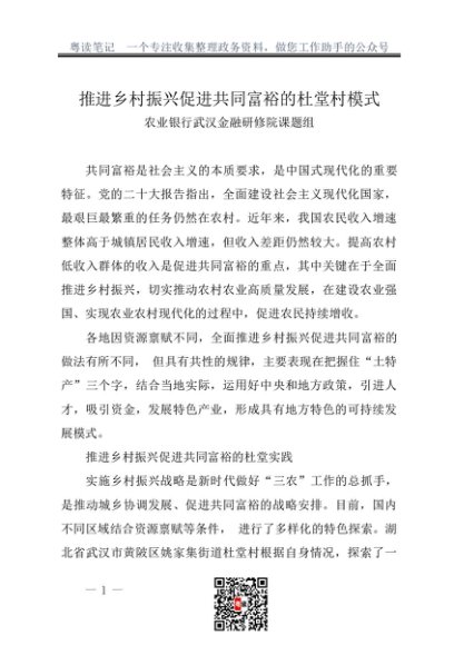 / 调研报告:20230400推进乡村振兴促进共同富裕的杜堂村模式——农业银行武汉金融研修院课题组