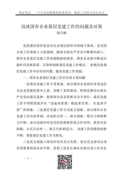 / 调研报告:20230400浅谈国有企业基层党建工作的问题及对策