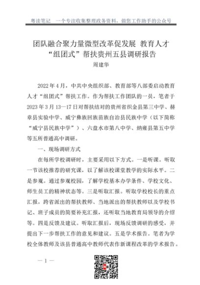 / 调研报告:20230400团队融合聚力量微型改革促发展 教育人才“组团式”帮扶贵州五县调研报告