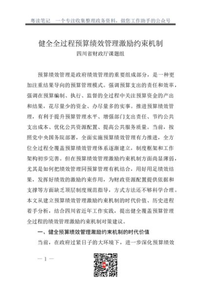 / 调研报告:20230900健全全过程预算绩效管理激励约束机制——四川省财政厅课题组