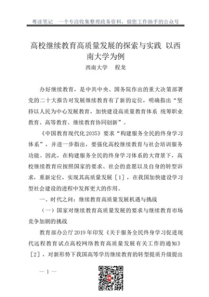 / 调研报告:20230400高校继续教育高质量发展的探索与实践 以西南大学为例