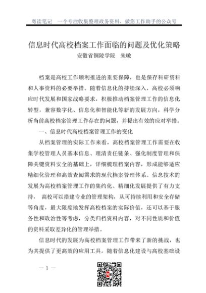 调研报告:20230400信息时代高校档案工作面临的问题及优化策略