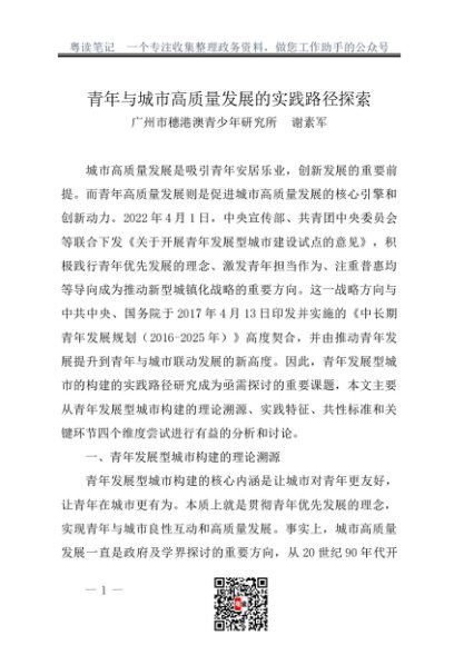 / 调研报告:20230400青年与城市高质量发展的实践路径探索——广州市穗港澳青少年研究所