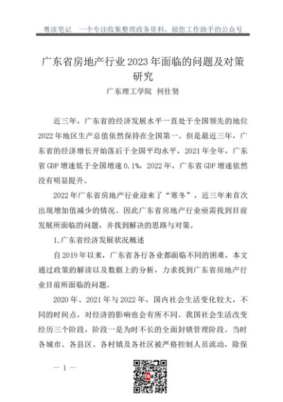 / 调研报告:20230400广东省房地产行业2023年面临的问题及对策研究