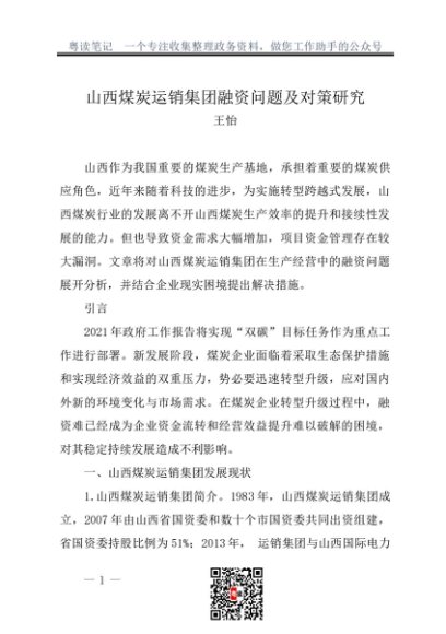 / 调研报告:20230400山西煤炭运销集团融资问题及对策研究