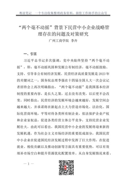 / 调研报告:20230900“两个毫不动摇”背景下民营中小企业战略管理存在的问题及对策研究——广州工商学院