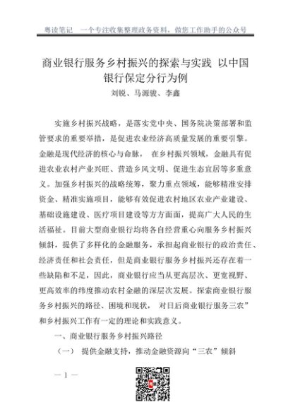 / 调研报告:20230400商业银行服务乡村振兴的探索与实践 以中国银行保定分行为例