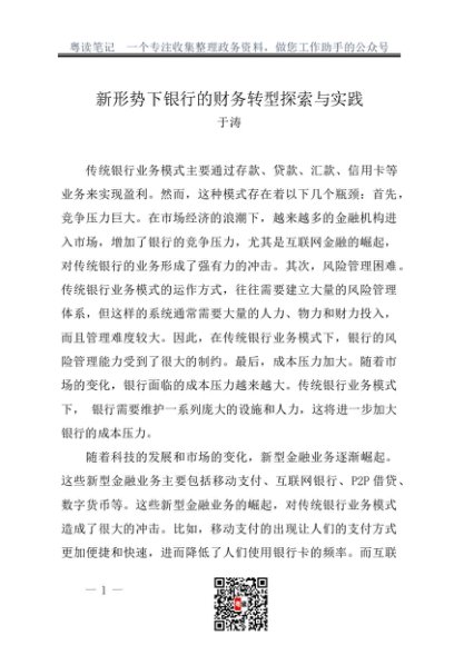 / 调研报告:20230400新形势下银行的财务转型探索与实践