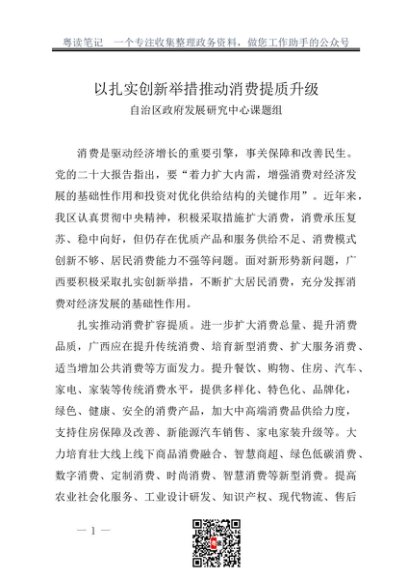 / 调研报告:20230900以扎实创新举措推动消费提质升级——自治区政府发展研究中心课题组