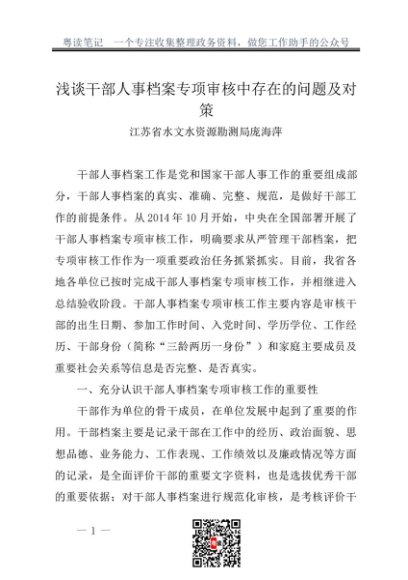 / 调研报告:20230400浅谈干部人事档案专项审核中存在的问题及对策