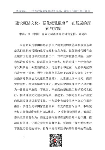 / 调研报告:20230400建设廉洁文化,强化派驻监督” 在基层的探索与实践
