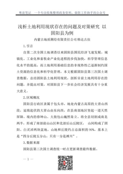 / 调研报告:20230400浅析土地利用现状存在的问题及对策研究——内蒙古地质测绘有限责任公司