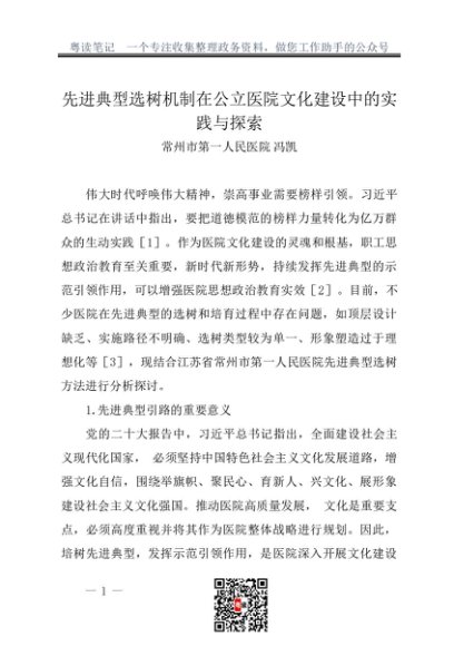 / 调研报告:20230200先进典型选树机制在公立医院文化建设中的实践与探索