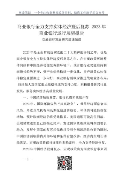 / 调研报告:20230300商业银行全力支持实体经济疫后复苏 2023年商业银行运行展望报告