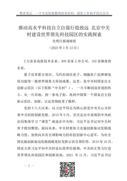 / 调研报告:20230113推动高水平科技自立自强行稳致远 北京中关村建设世界领先科技园区的实践探索