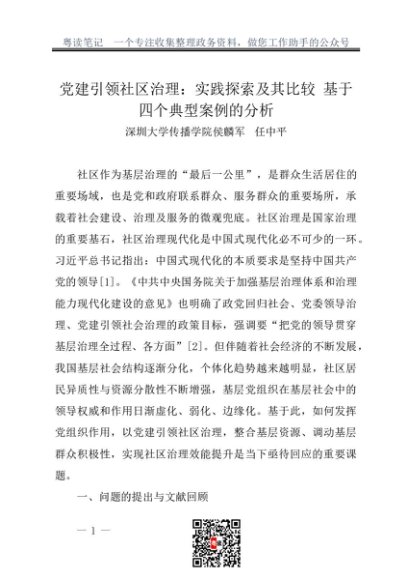 / 调研报告:20230200党建引领社区治理:实践探索及其比较 基于四个典型案例的分析