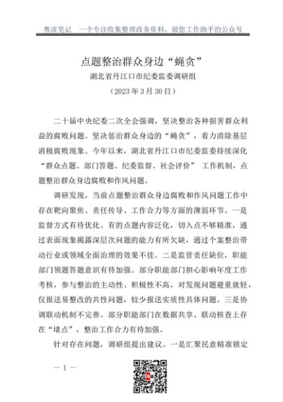 / 调研报告:20230330点题整治群众身边“蝇贪”——湖北省丹江口市纪委监委调研组