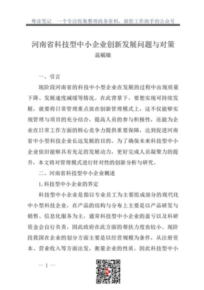 / 调研报告:20230100河南省科技型中小企业创新发展问题与对策